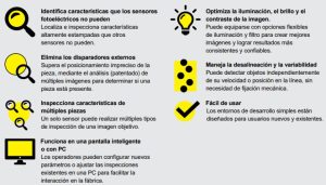 Herramientas de procesamiento de visión: Procesan y optimizan una imagen para su análisis; revisan la imagen y extraen la información requerida; utilizan algoritmos para ejecutar la inspección necesaria y tomar una decisión.
